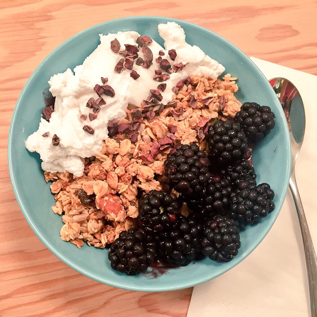 Regular readers can guess how delighted I was to also discover that the Power Hour included lunch at Raw Press across the street, as this trendy cafe is one of my favourite healthy hangouts in town. As the shake from Brown’s was quite filling in itself, I opted for a light acai bowl topped with blackberries, coconut yogurt, granola and cacao nibs. Deliciously wholesome and cooling, it always hits the spot during the humid summer months.