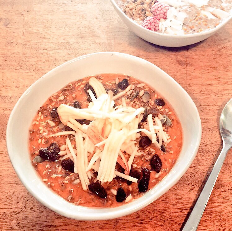 … And carrot porridge! Who knew that carrot juice blended with oats and rice would make such a harmonious match. Flavoured with spices, seeds, raisins and ginger maple, it struck a fine and incredibly tasty balance between sweet and savoury.