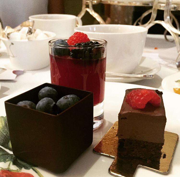 Finger sandwiches were replaced with open-faced fillings (smoked chicken and guacamole; poached salmon and dill creme fraiche) on either spelt or dark rye bread, alongside carb-less options that saw smoked mackarel and a soft-boiled quail’s egg cocooned in a chicory leaf; and tabbouleh atop a gem heart leaf. The relative lack of vegetarian options here was disappointing, especially as my only choice, the tabbouleh, was far too dry and quite bland.