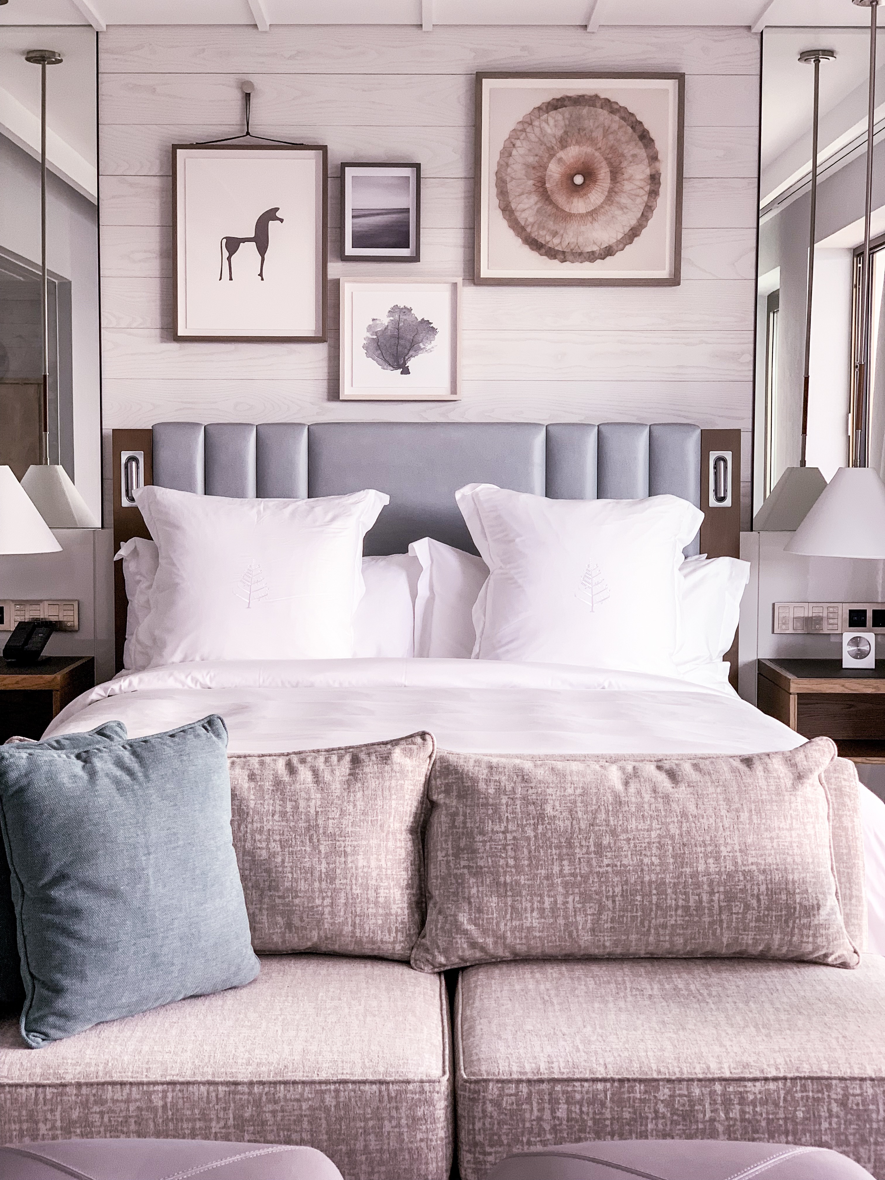 The other, Nafsika, is more lofty and certainly far livelier, with luxury boutiques and a colossal lounge bedecked with the glossy interiors characteristic of Martin Brudnizki (the designer behind Annabel’s, Sexy Fish and Brasserie of Light in London). Nafsika is also quite distinctly geared towards families with tots in tow; whilst Arion has a more toned-down, grown-up edge that instantly resonates with us. Think contemporary-chic aesthetics lifted by a retro twist.