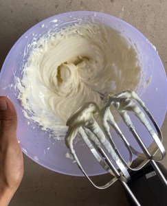 - Beat softened cream cheese with icing sugar until smooth and creamy.