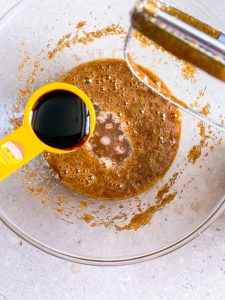 - Next add the egg, beating again until combined. Then whisk in the vanilla extract and coffee.