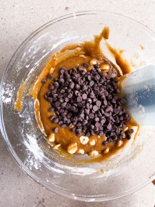 - Finally, fold in the chocolate chips and chopped hazelnuts.
