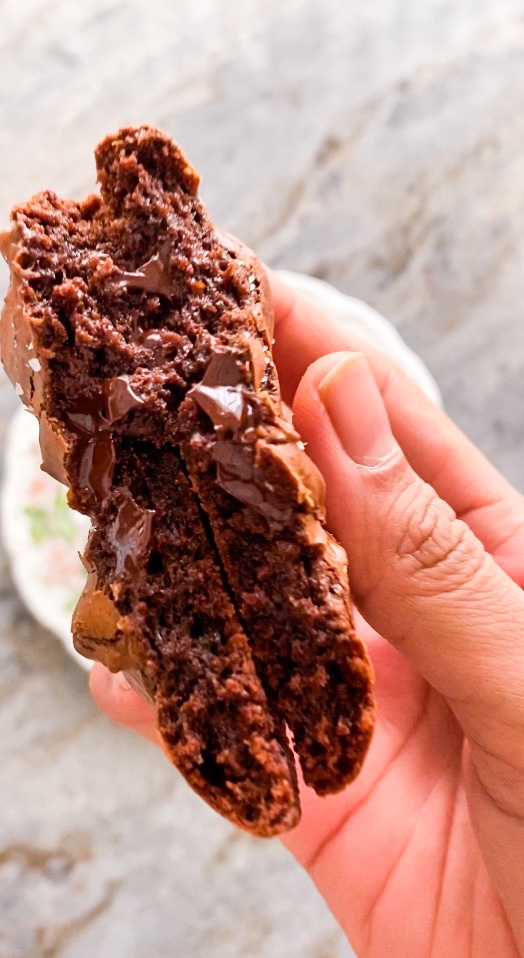 - Finally, keep a close eye on the timer. These cookies will bake for 8 – 10 minutes depending on your oven and the temperature of the batter (our’s are usually done at the 8.5 minute mark). Remove the cookies as soon as the tops look shiny and cracked and the centres are still soft (the edges will look set but will not be completely firm). If you over-bake your brownies, they won’t be as gooey as you’d like!