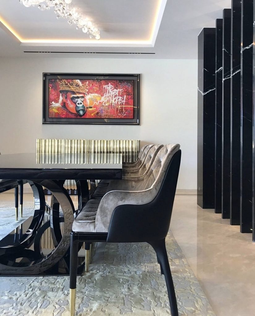 Overall, the art and interior co-ordination is inherently complimentary and you can see that at least one aspect of the interior, be it the furniture color, the marble or the carpet, ties in with the art work displayed. This mรฉlange goes a long way in subconsciously communicating particular design personalities and emotions and should definitely be curated as per personal preference!