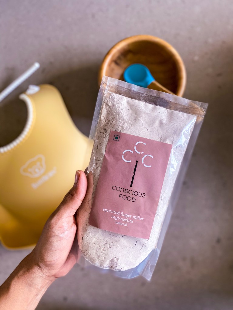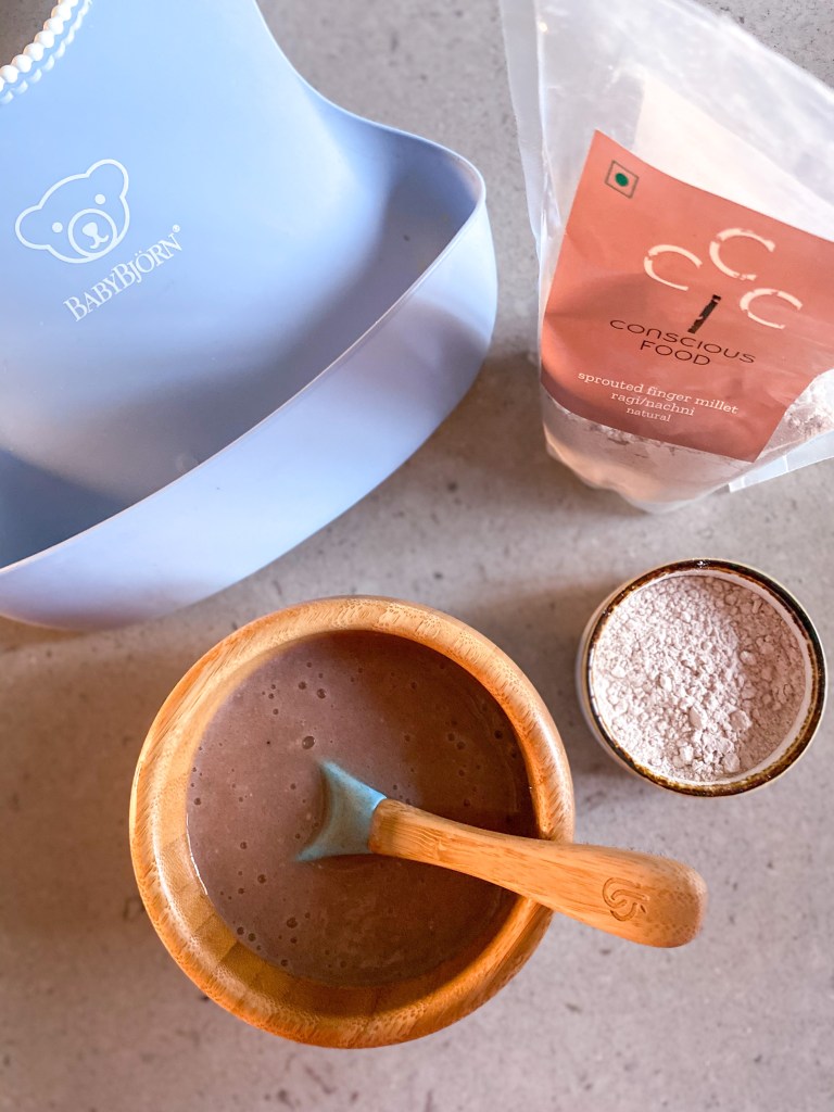 The best part? Ragi porridge is incredibly simple to make and can be sweetened naturally with a mashed banana (or dates/ jaggery if you’re making it for a toddler). I use sprouted ragi “atta” (flour) from Conscious Foods, as not only is it organic but also has an amplified nutritional content by virtue of the flour being sprouted. In fact. if you’re interested here are just a few of the incredible benefits of sprouted ragi for your little ones: