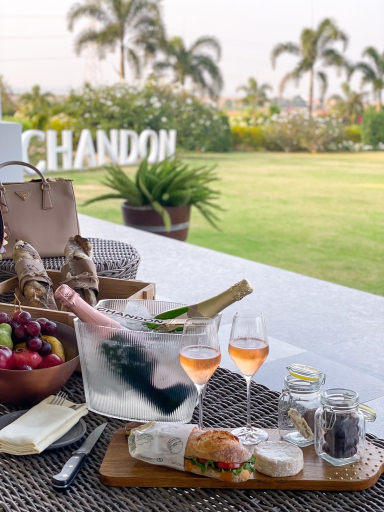 On our main agenda today is a visit to Chandon in nearby Dindori. Helmed by Moรซt Hennessy, the elegant and architecturally-striking winery is the sixth of its kind in the world, harnessing the LVMH-owned brand’s winemaking expertise. The proof is in a behind-the-scenes tour of the impeccable facilities, after which we plonk ourselves down in the chic terrace-lounge looking out onto the manicured gardens and vineyards. The other-worldly experience is brought to life with the satisfying pop of Chandon’s signature Rose, as the brand ambassador Amrut deftly uncorks the bottle with one fell swoop of a saber! The affable team of Le Bistro back at the hotel have thoughtfully remembered to pack a picnic for our outing, brimming with sandwiches, cheese and more grazing bites.