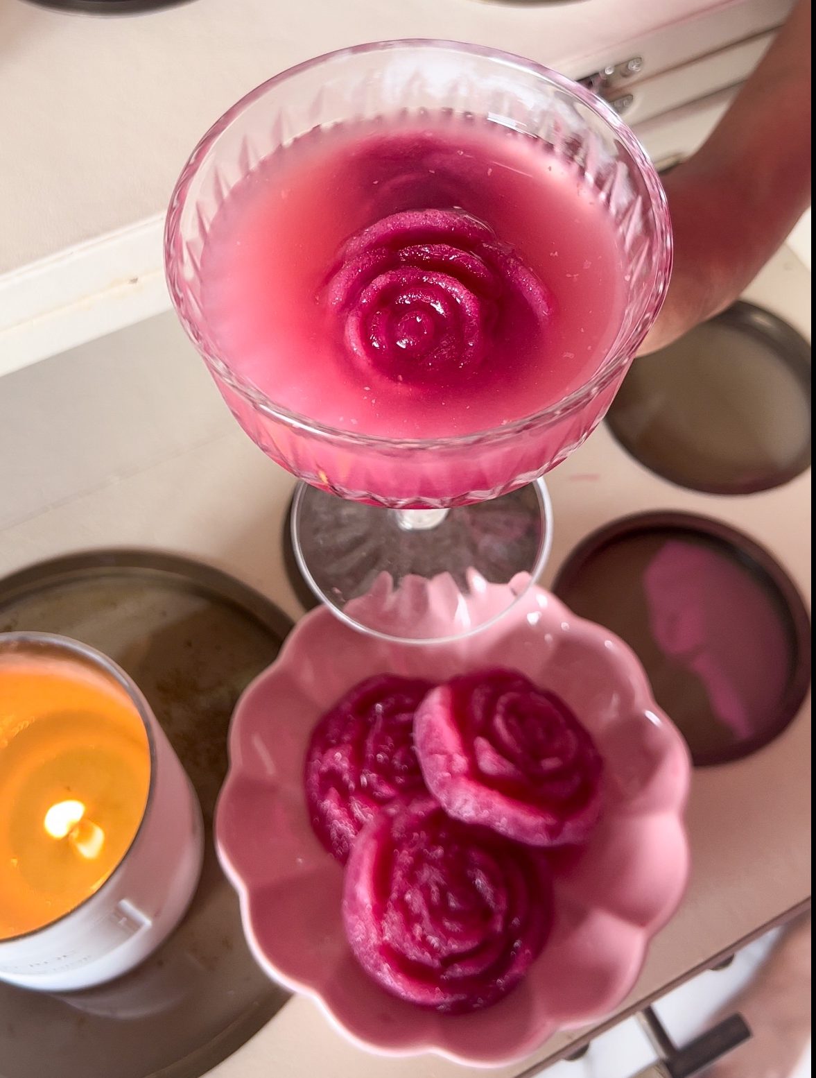 - Freeze until set and then add your aesthetic rose ice cubes to your next Aperol Spritz or any cocktail of choice. For instance, you could add these orange roses to a champagne coupe to make mimosas.