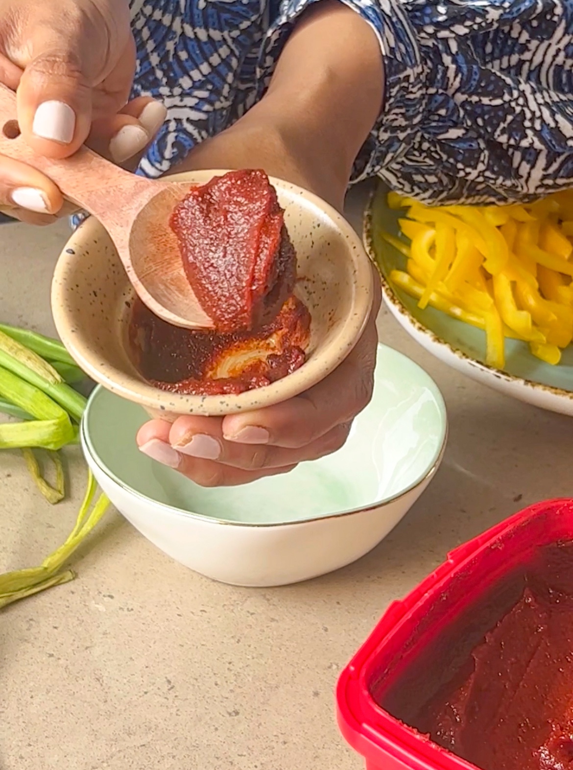 - Gochujang: this fermented red pepper chilli paste is a staple in Korean cooking, imparting fiery shades of heat offset by a subtle natural sweetness from its fermenting grains. Beyond its traditional uses for dishes such as bibimbap or bibimguksu (cold noodles), you can add gochujang to just about anything from eggs to pasta and salads.