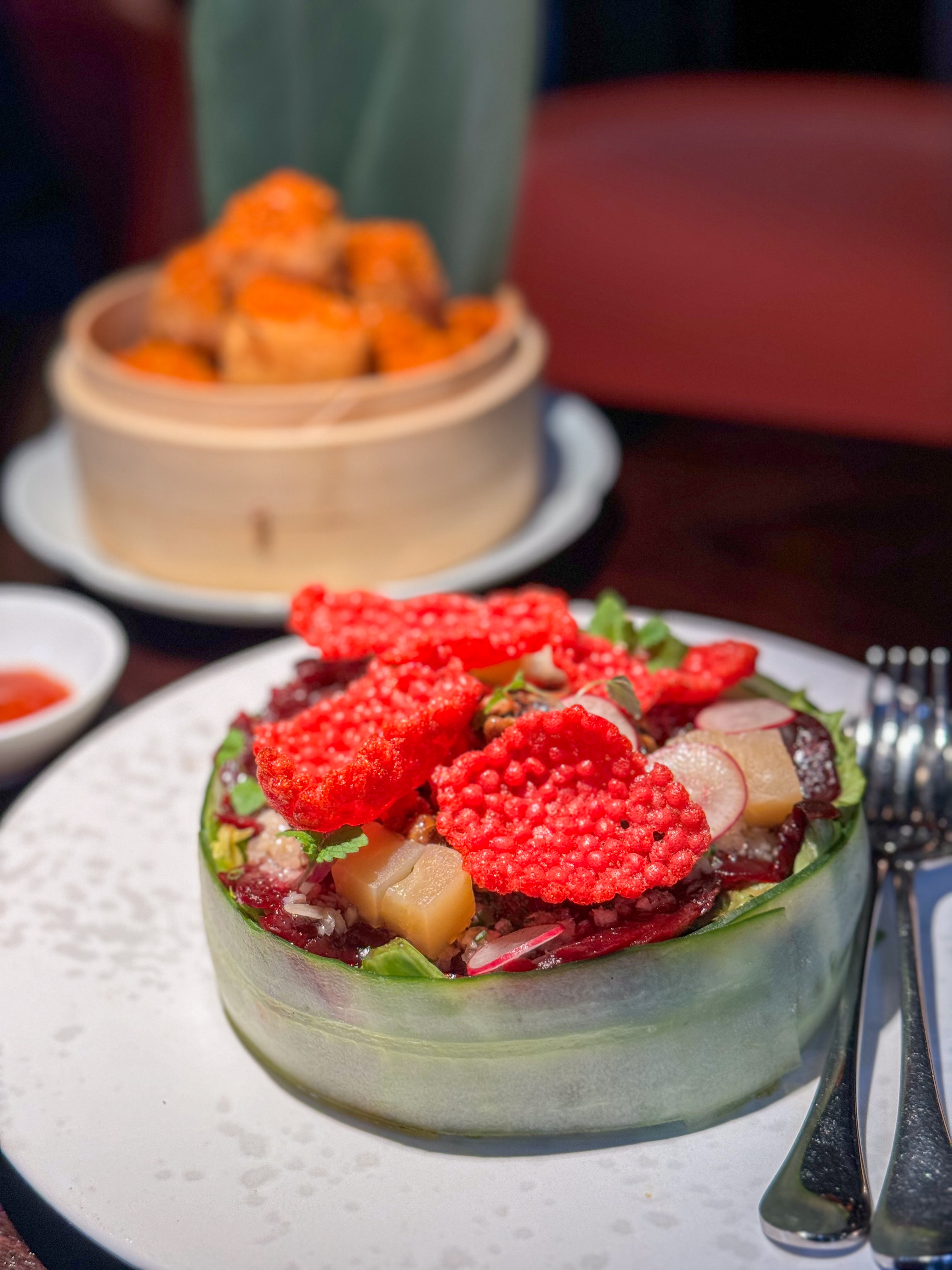 With restaurants around the world, Hakkasan is a name which needs no introduction. Its Mayfair-based outpost sets itself apart with a sultry allure that ebbs from day to night with effortless flair. The modern Cantonese menu caters remarkably well for vegetarians and vegans, with certain dishes (including a succulent take on mock chicken) the closest some might come to eating meat. Donโt be shy to ditch your usual glass of wine for the signature lychee and sake-infused Hakka; but to really up the ante, round off your evening with the contemporary dessert pairing (pearl-like caviar-style passionfruit) served with the most complex expression of cognac, Louis XIII. 17 Bruton St, W1J 6QB | https://hakkasan.com/mayfair/