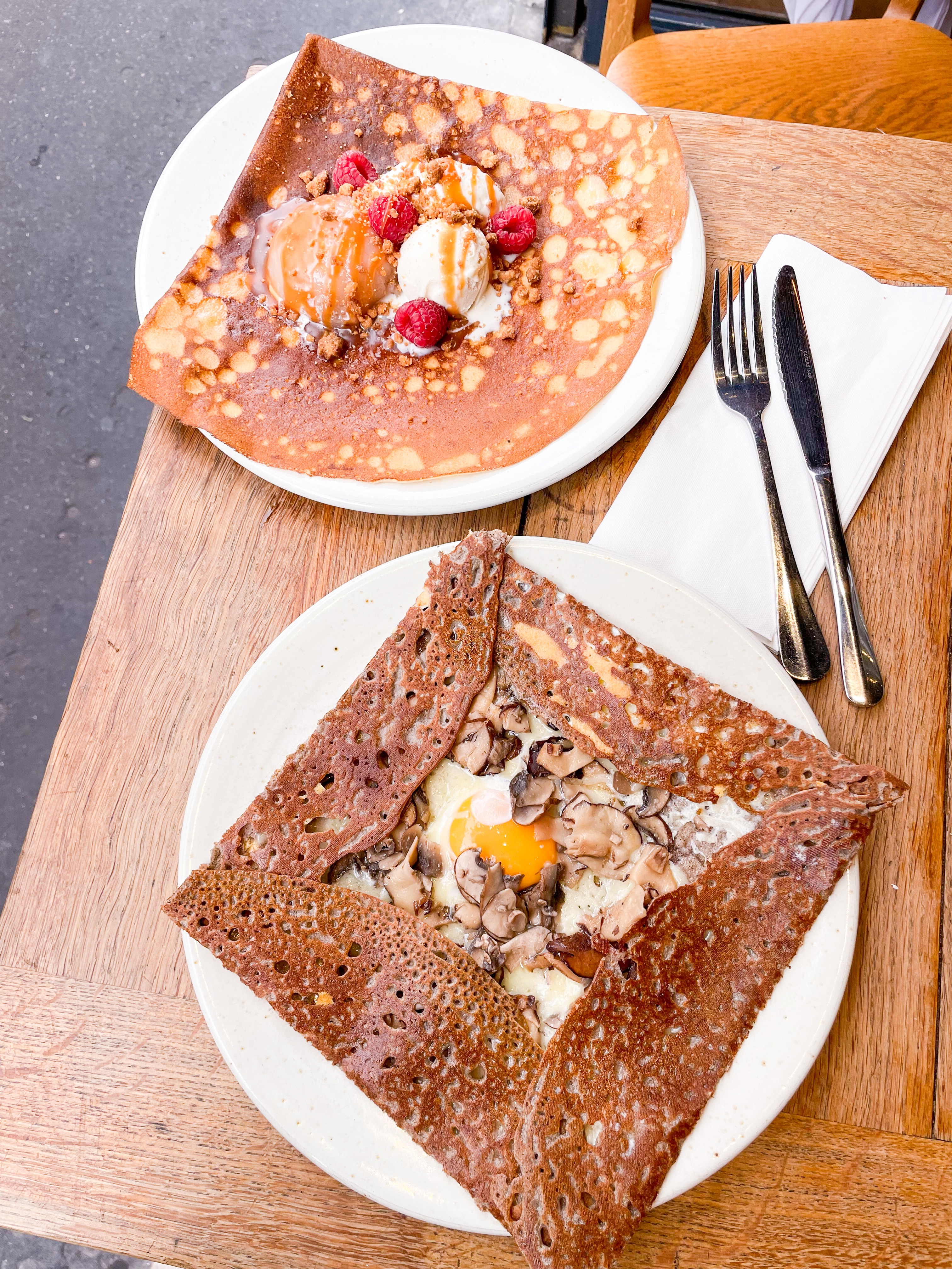 Brunch is worth the accompanying wait at Breizh, a rustic pared-down cafรฉ in the Marais district, championing Breton galletes. With its original outpost in Japan, Breizh is in fact the Breton word for the French region of Britanny. Their sweet and savoury buckwheat crรชpes are a thing of beauty, delicately latticed and crisp around the edges, giving way to an unexpectedly-delicious compilation of fillings.ย 109 Rue Vieille du Temple, 75003 Paris | https://www.breizhcafe.com/le-marais