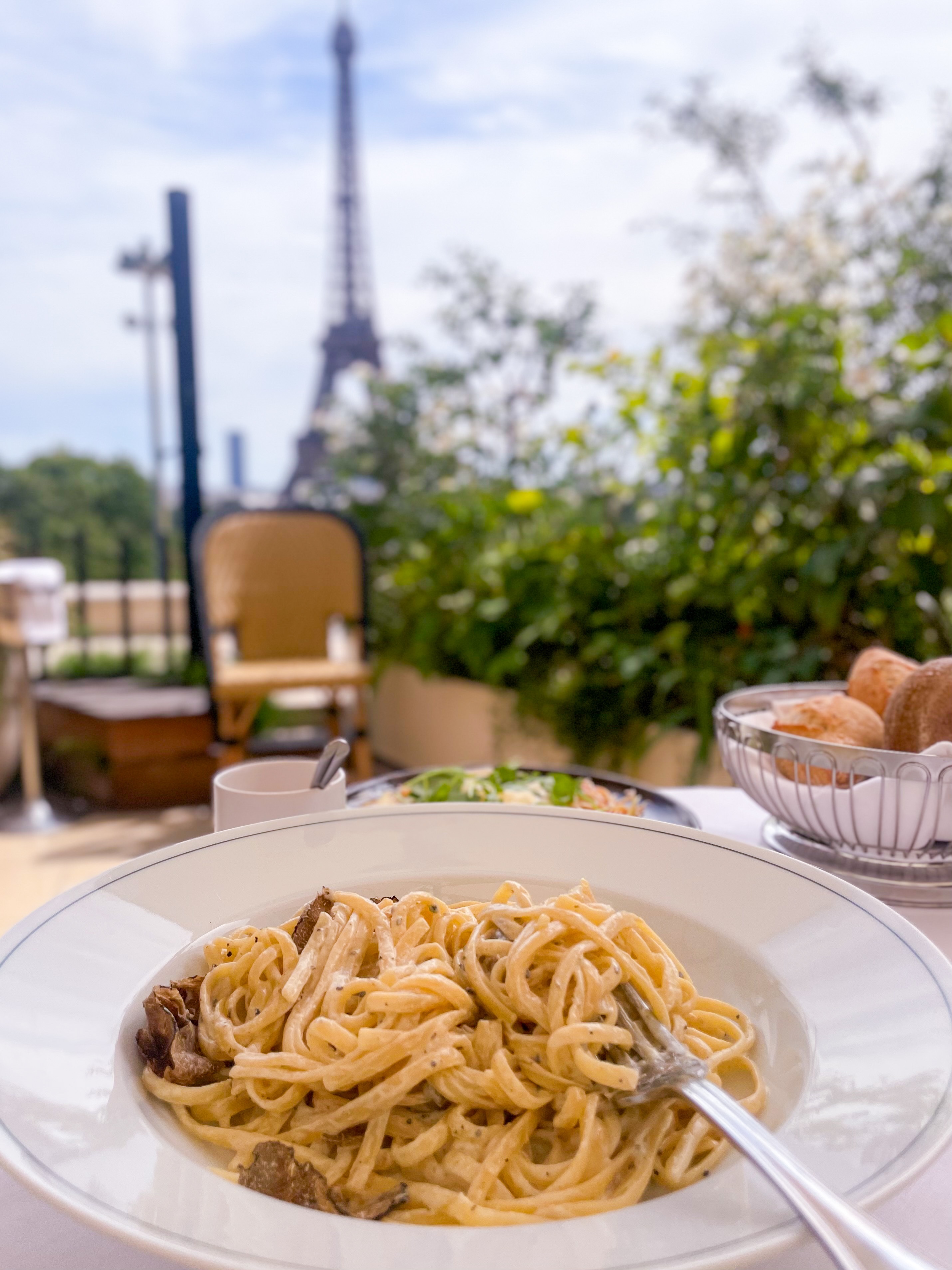 The breezy outdoor terrace of this hyper-stylish restaurant isย theย place to park yourself at during warmer months, positioning you right onto Place du Trocadero with an unencumbered view of the Eiffel Tower. The menu majors in seafood and the limited vegetarian options (including a truffled pasta) are admittedly not all that memorable, although the experience certainly makes up for it with our afternoon unfurling at a languid pace, soundtracked by soft chatter and the delicate clink of wine glasses.ย 1 Pl. du Trocadรฉro et du 11 Novembre, 75016ย | https://girafe-restaurant.com/en/