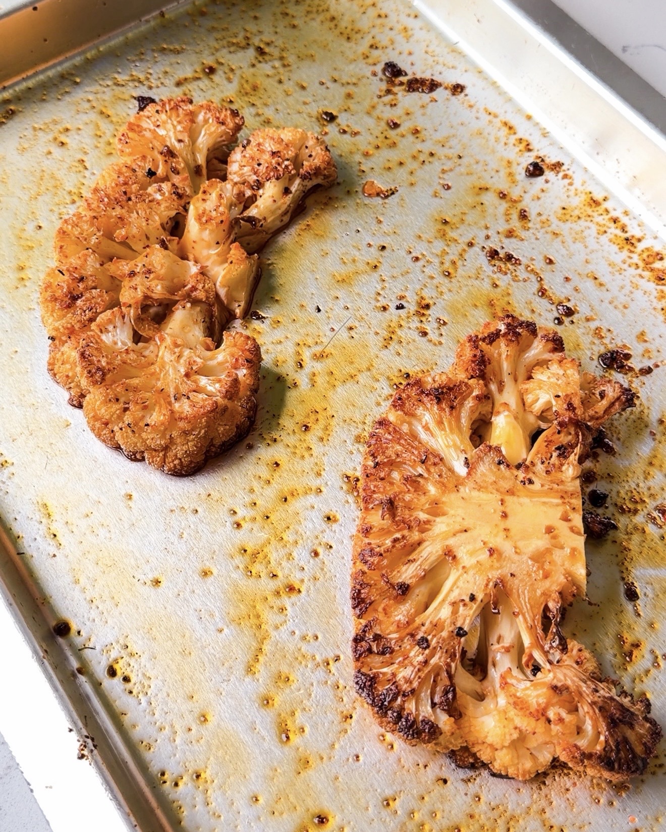 - Brush the marinade generously over the cauliflower and roast at 180°C until golden on the outside but tender within. Pro tip: flip halfway to ensure both sides roast evenly.