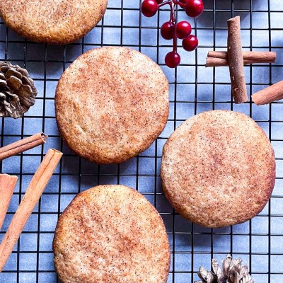 In a small bowl or plate, mix in the remaining sugar and cinnamon powder and then make palm-sized cookie dough balls and roll into the mixture. Coat the balls evenly.